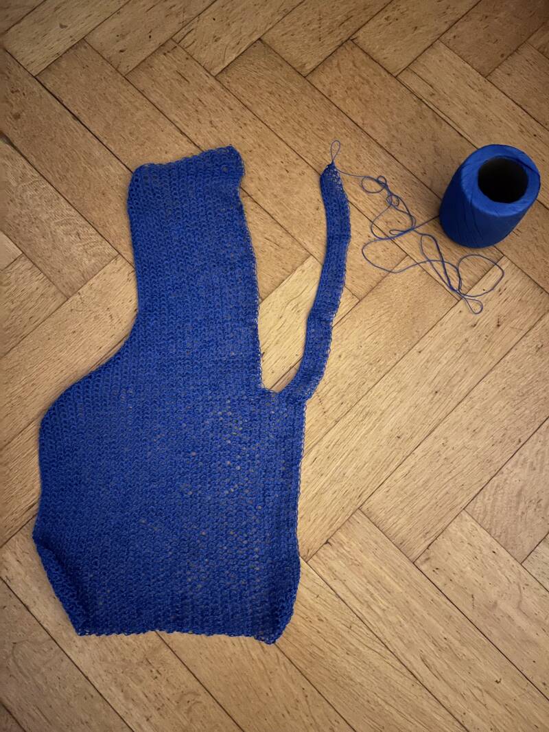 Das Rückteil wird dann exakt noch einmal so gehäeklt und die beiden Teile dann zusammen genäht oder -gehäkelt. Ich bevorzuge das Zusammenhäkeln aus einem einfach Grund: zusammengenähte teile lassen sich schwerer wieder auftrennen falls am ende etwas nicht passen sollte.