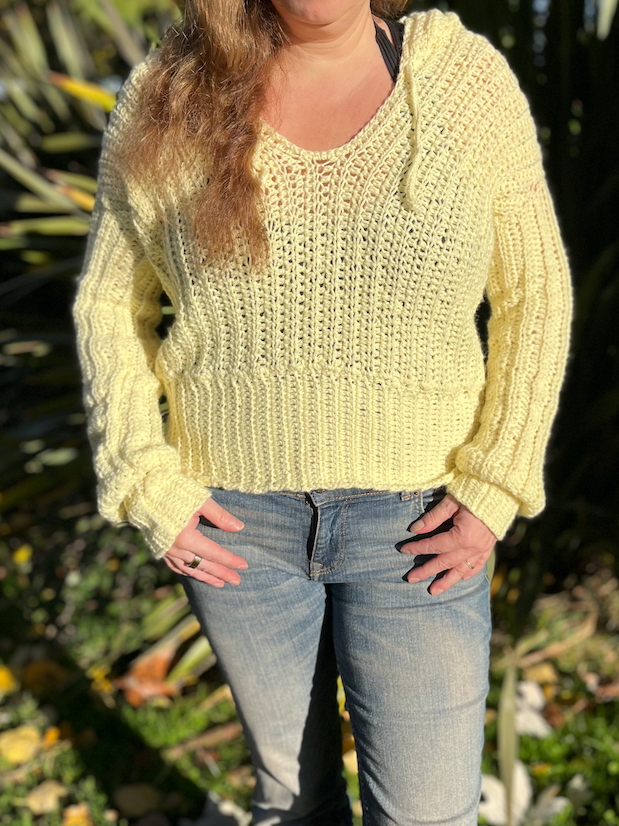 This crochet pattern describes a cozy hoodie. The soft merino wool also invites you to chill out. The pattern is simple and therefore suitable for beginners.