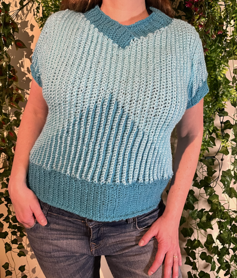 This T-shirt has a classic cut with a V-neck and the triangular color gradient makes it an eye-catcher.