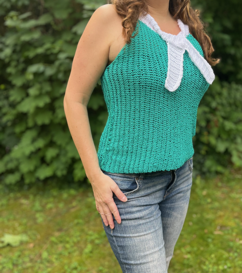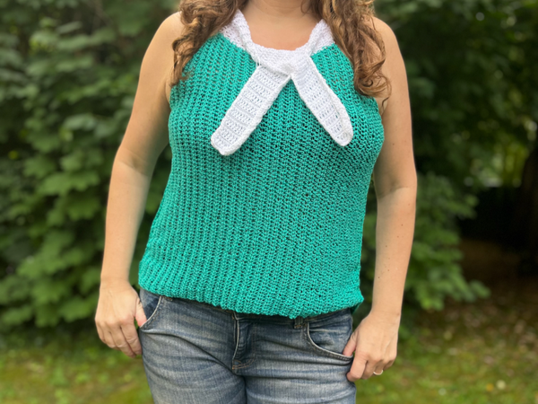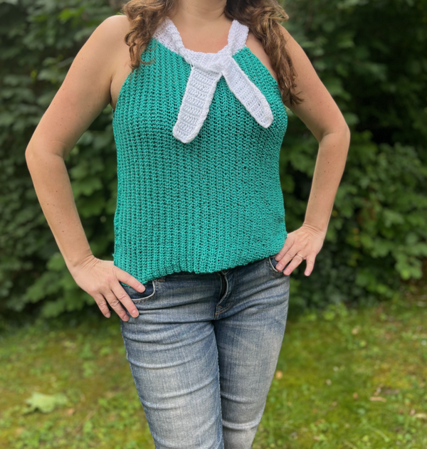 Create your own individual summer statement with this crochet pattern for a charming top! The design is characterized by an attractive pattern and an elegant, contrasting collar, which gives the top a special touch. The detailed instructions guide you step by step to your new favorite piece - perfect for walks on the beach, strolls through the city or relaxing hours in the countryside.